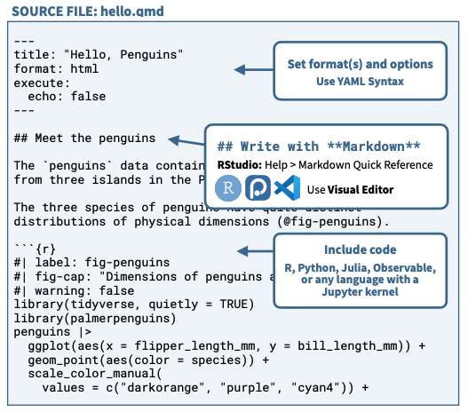 Similar tools are available in other languages, and Quarto can contain code chunks of various languages, possibly in the same document.